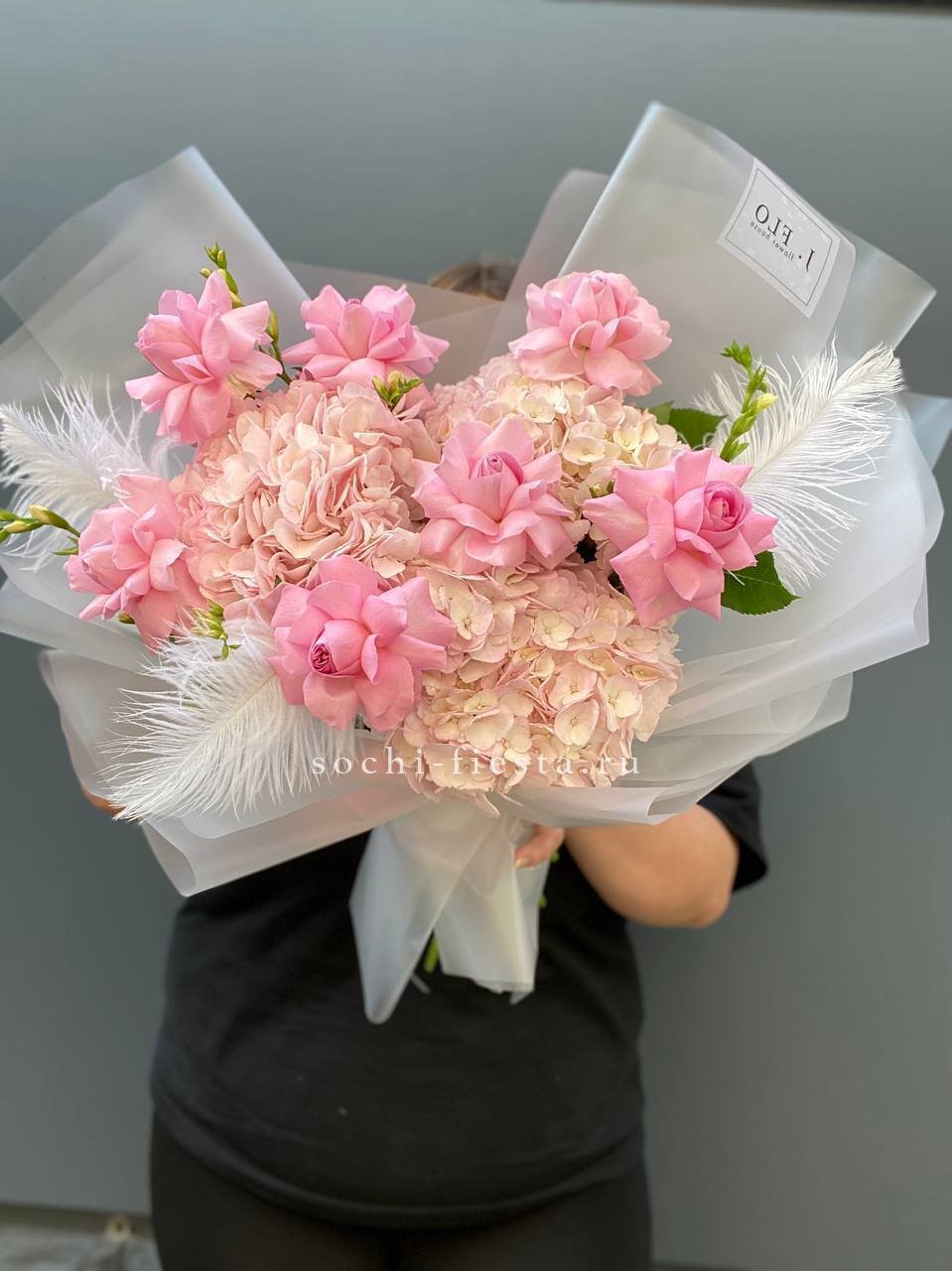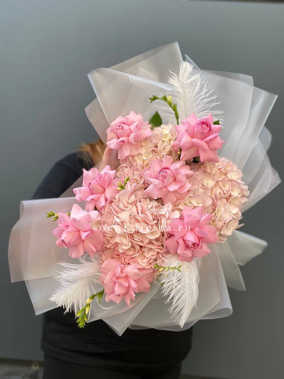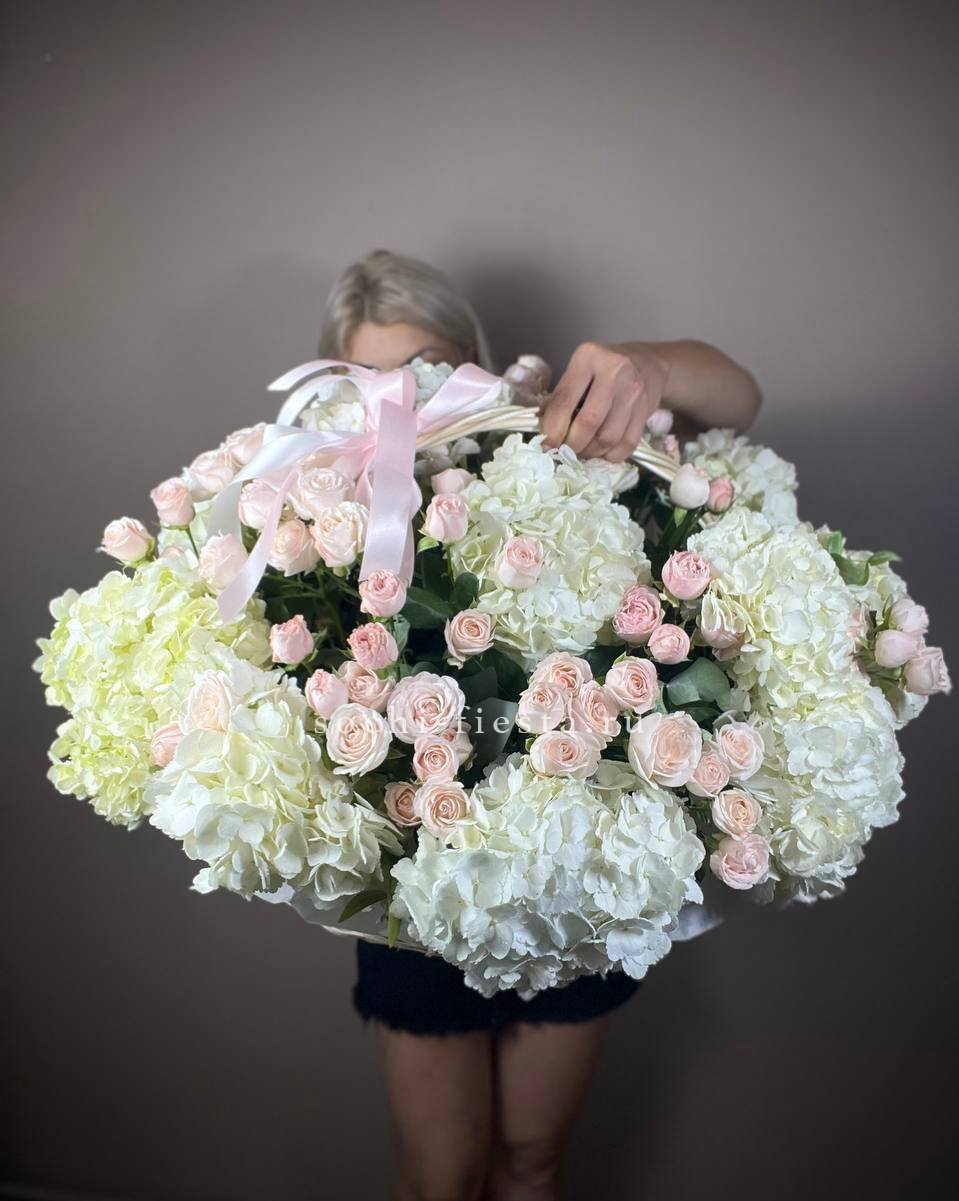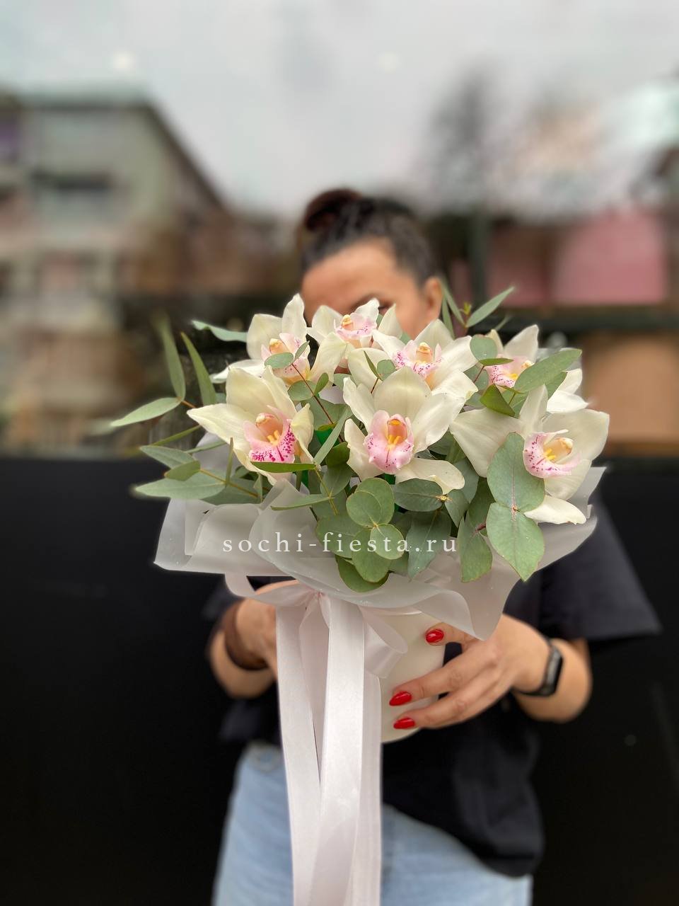 Французские розы Джумилия раскрываются широкими бутонами и формируют яркую композицию из пятнадцати стеблей. Каждый цветок демонстрирует характерную для сорта фактуру с плотными слоями лепестков.