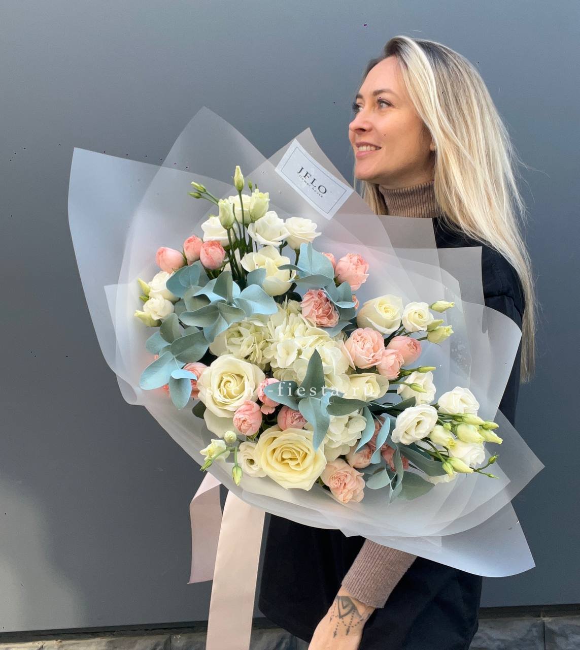 Золотистые краспедии и воздушный лагурус создают солнечную композицию в цилиндре. Перья добавляют легкости, а веточки хлопка привносят природную простоту. Сухоцветы сохраняют форму месяцами и не требуют ухода.