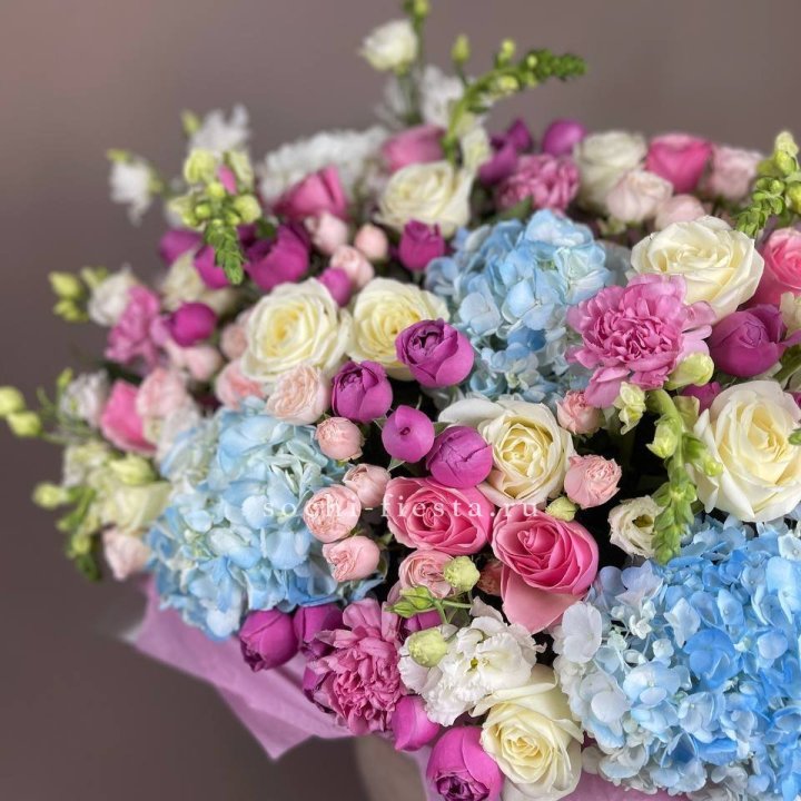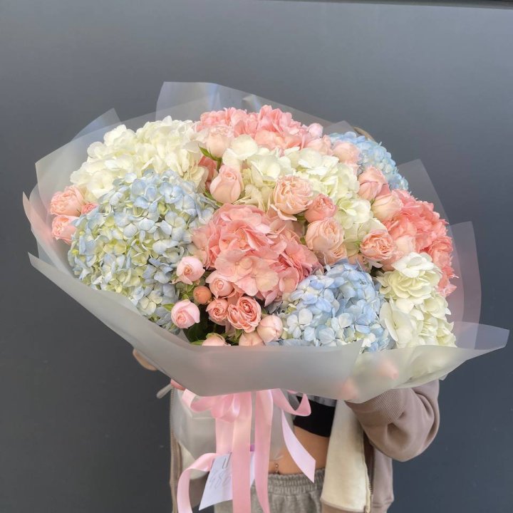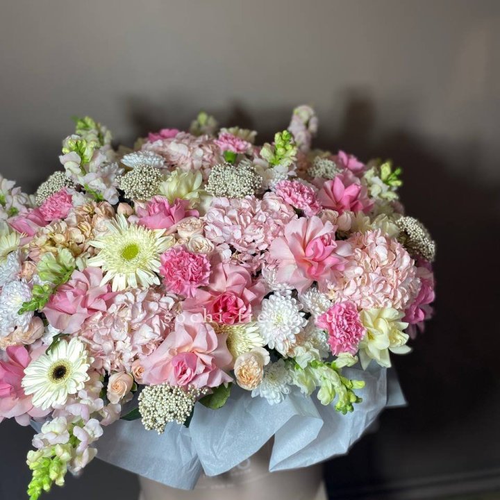 Цветочная корзина из пионов и пионовидных роз "Перфекте"