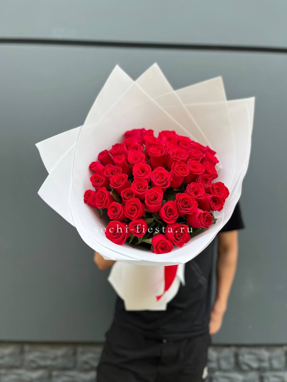 альстромерия - 51 шт., лента, дизайнерская упаковка.