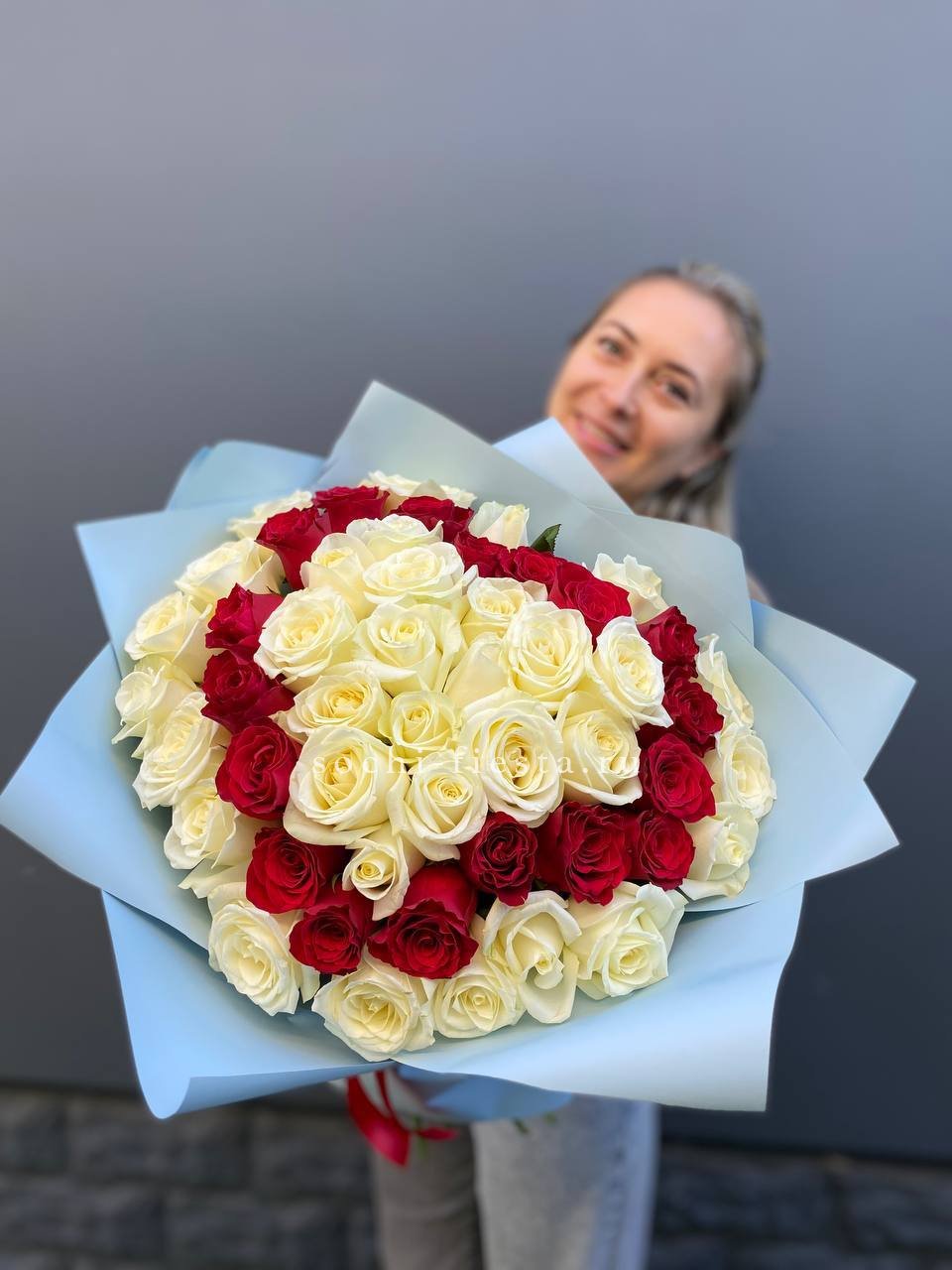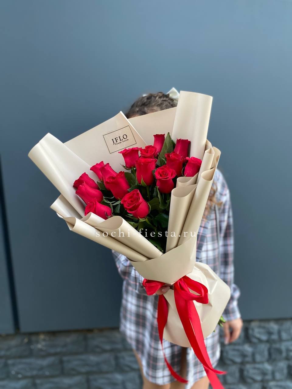 Двадцать одна ветка альстромерии образует плотный объём и насыщенную игру красок. Многоцветные соцветия распускаются волнами, создавая живописное движение внутри композиции.