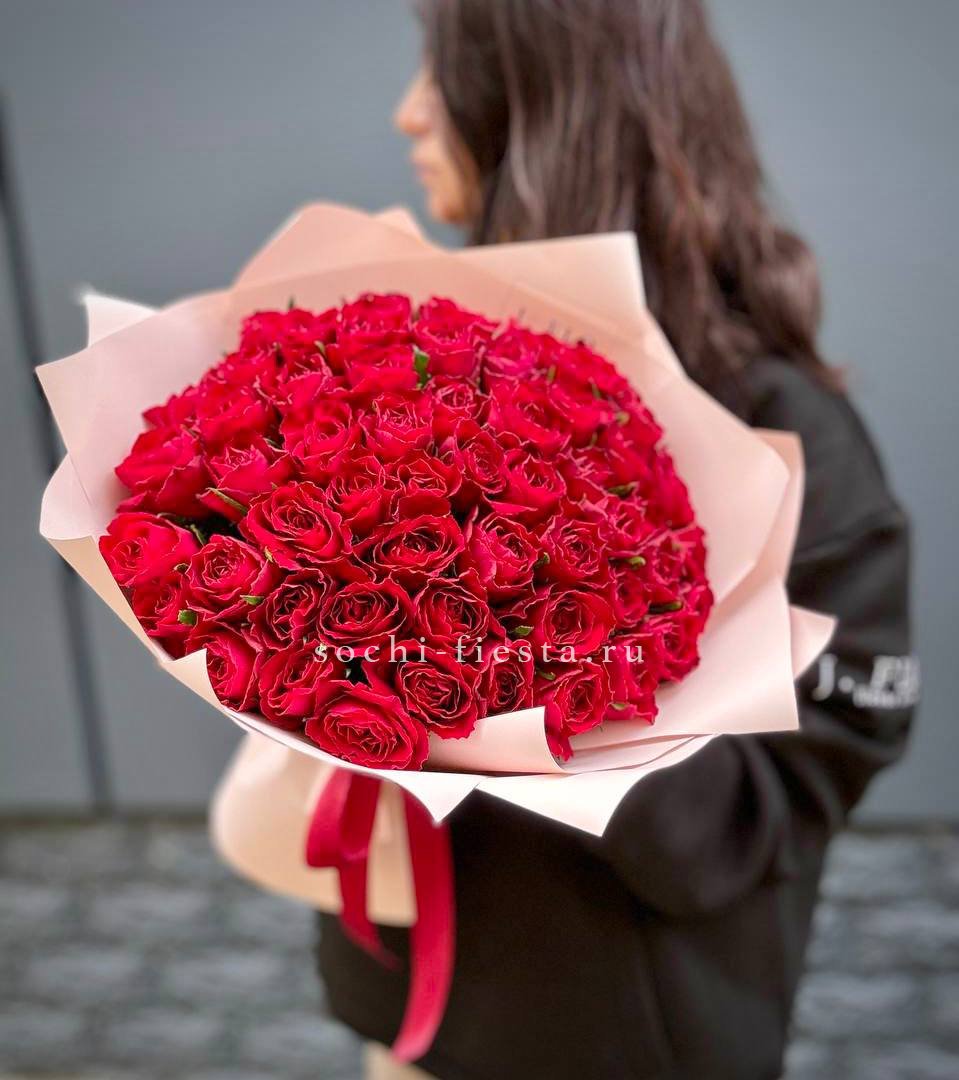 Тридцать семь тюльпанов создают яркое цветовое пятно в любом интерьере. Крафтовая упаковка оставляет композицию открытой и подчёркивает графику стеблей. Букет выглядит свободно и современно.