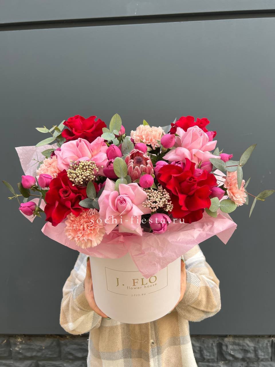 Композиция объединяет живые хризантемы и диантусы с ароматическим диффузором. Цветы сохраняют свежесть долго, а аромат наполняет пространство мягким шлейфом.
