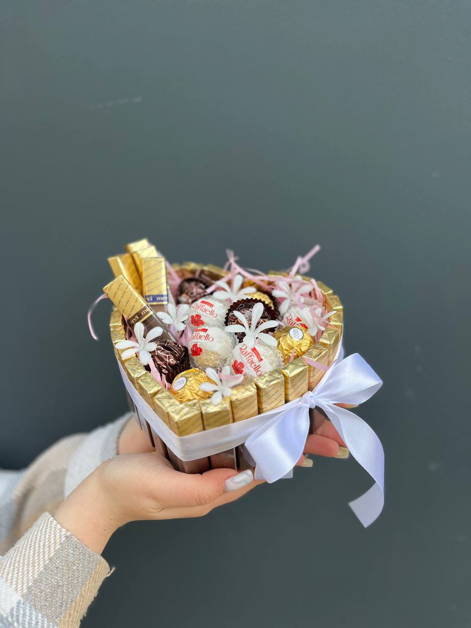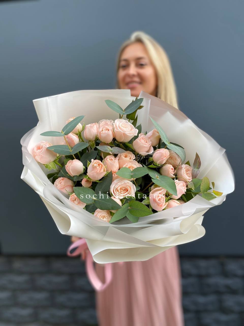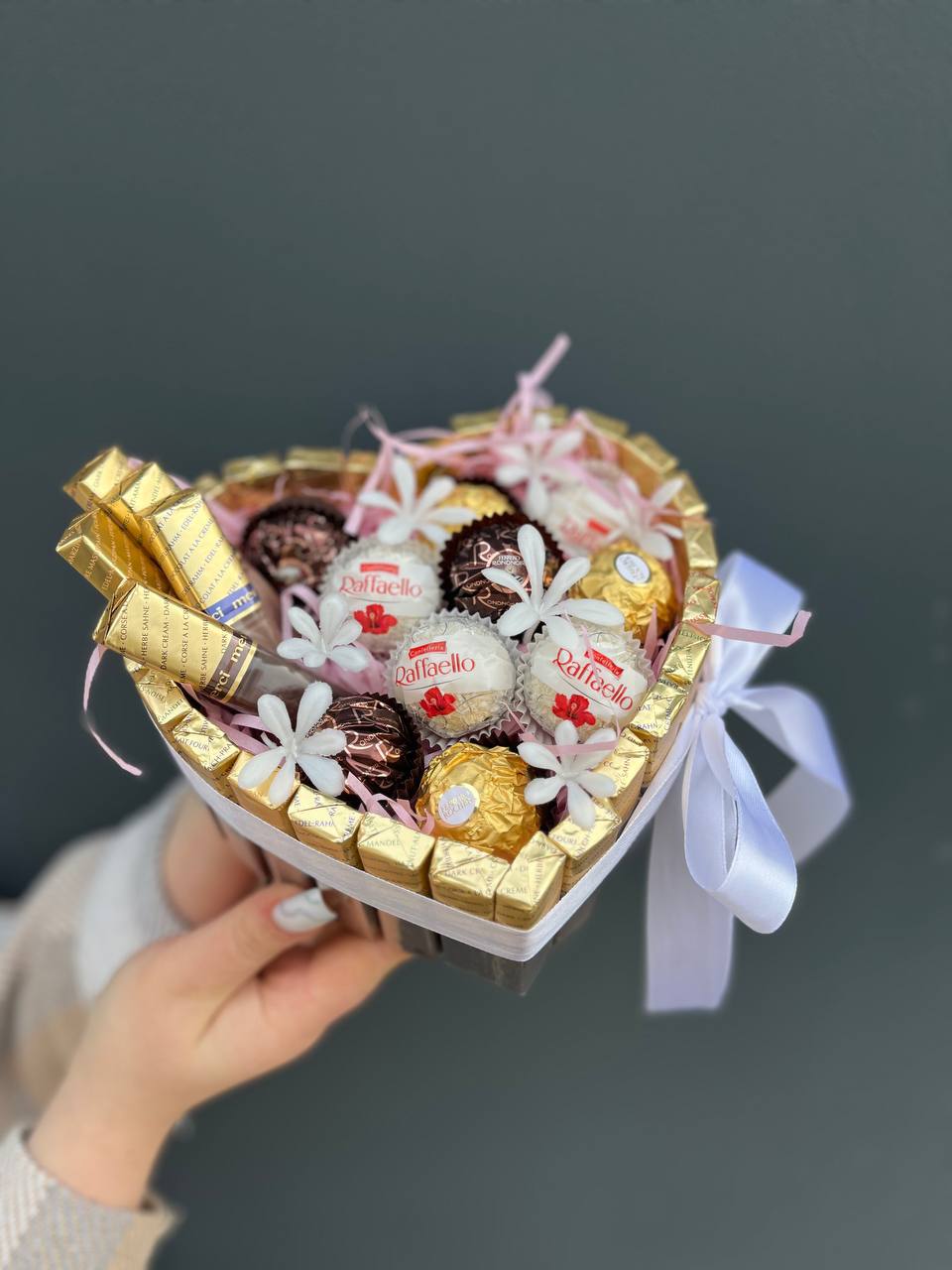 Хризантемы и львиный зев собраны в удобную сумочку с плотной структурой. Лимониум добавляет воздушности между яркими соцветиями. Композиция сохраняет свежесть долго и не требует особого ухода.