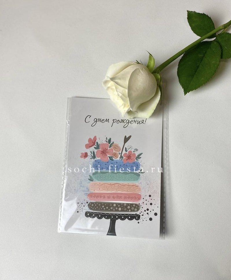 Открытка к букету "С днем рождения" торт