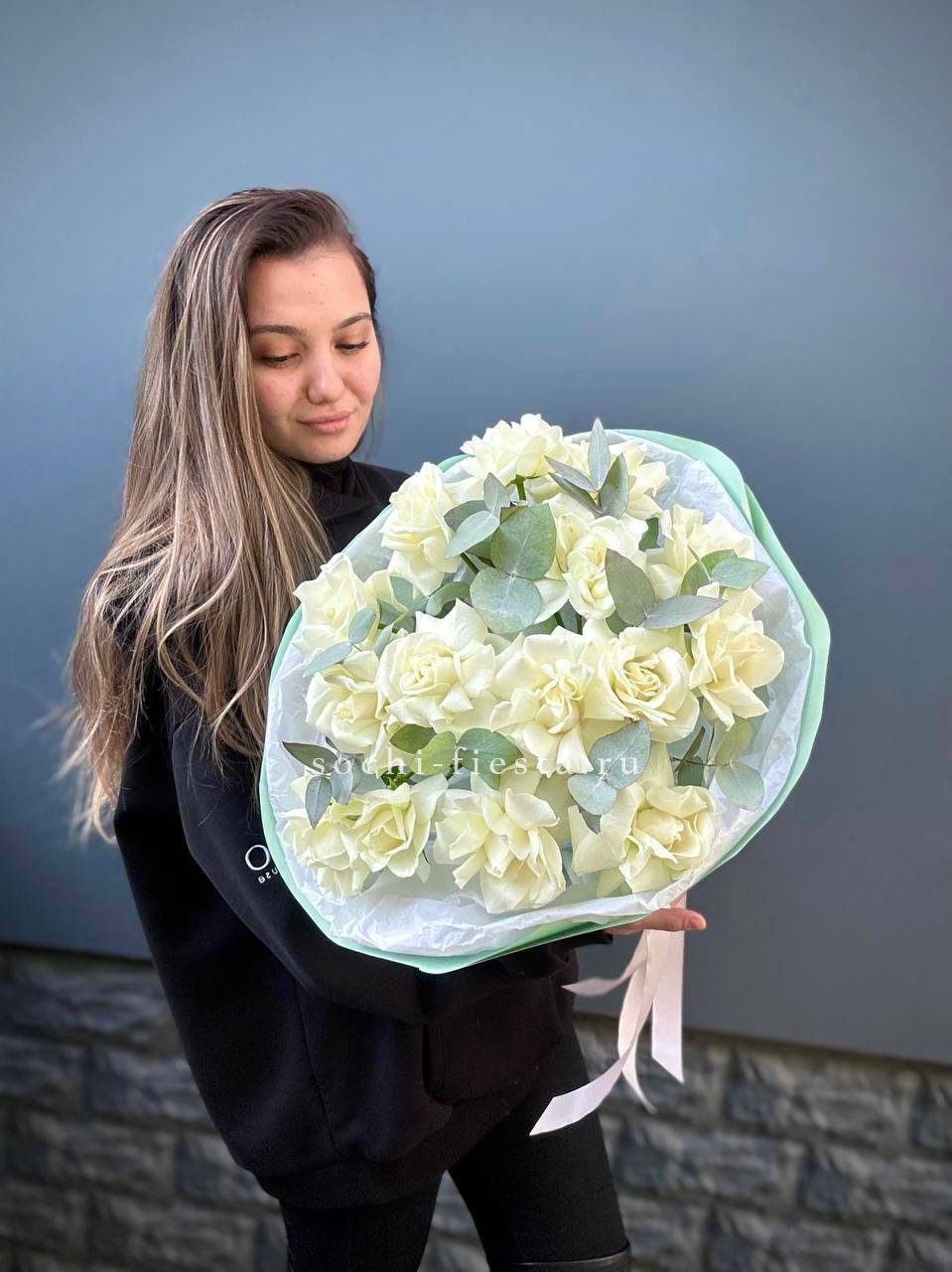 Белые кустовые розы 31 шт