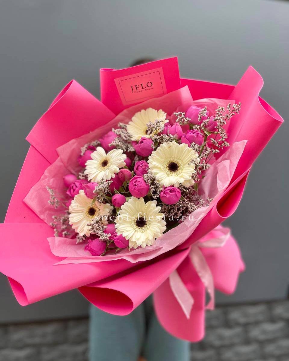 Букет гербер и мисти бабблс